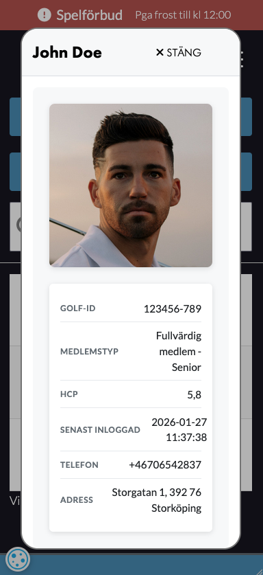 Som standard kommer det Digitala Medlemskortet utan en bild på personen. Det är för att vi inte får tillgång i bilderna från Min Golf. Från GIT får vi automatiskt Namn, Golf-ID, Medlemskategori och HCP.